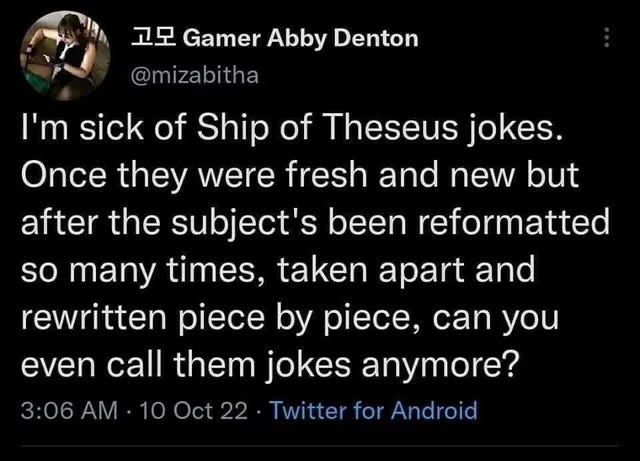 The puzzle starts simply enough: if every plank on the Ship of Theseus is replaced over the course of a century, is it still the same ship?